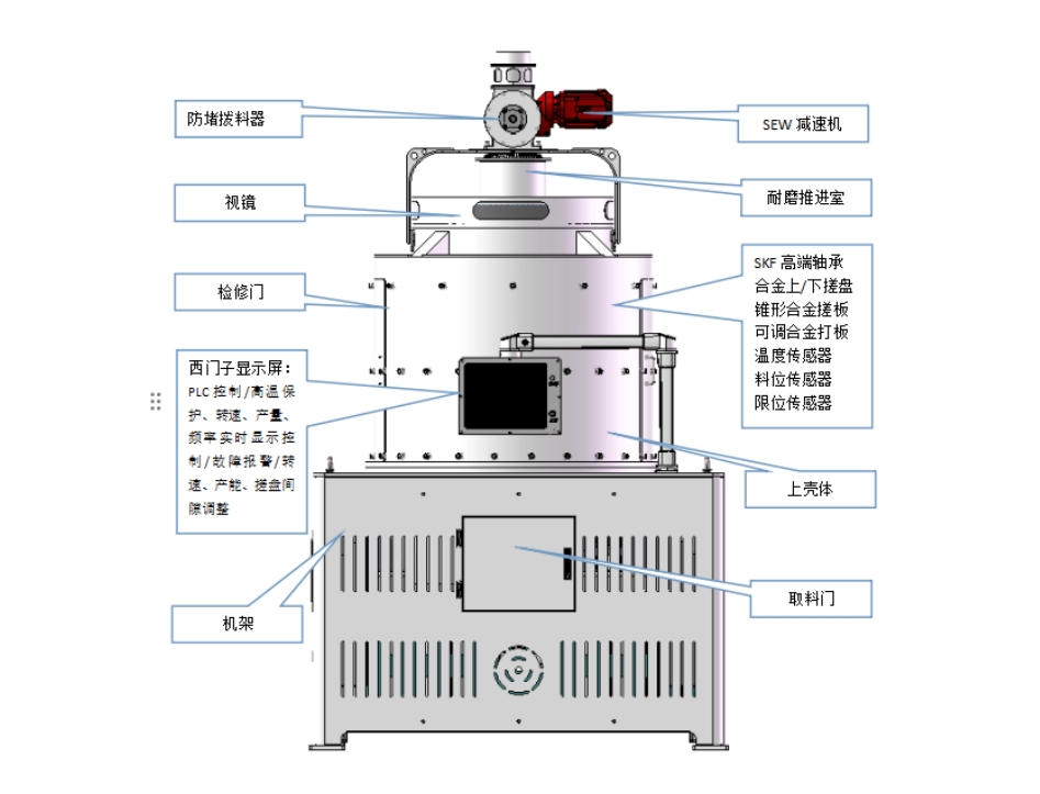 1、智能進(jìn)料防堵裝置:采用新型防堵結(jié)構(gòu)設(shè)計(jì),保證物料暢通不堵塞。